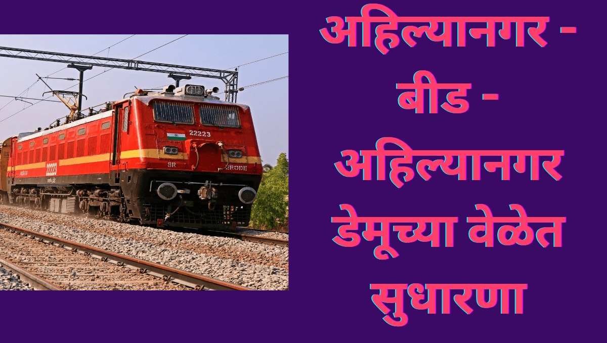 मध्य रेल्वे, पुणे विभागाने ०८.१२.२०२५ पासून ट्रेन क्रमांक ७१४४१ / ७१४४२ अहिल्यानगर – बीड – अहिल्यानगर डेमू (आठवड्यातून सहा दिवस) च्या वेळेत सुधारणा करण्याचा निर्णय घेतला आहे.