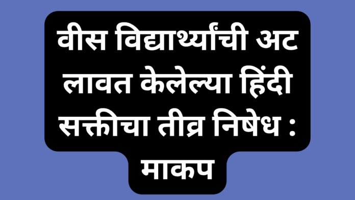 शुद्धिपत्रक काढून वीस विद्यार्थ्यांची अट लावत राज्य सरकारने राज्यात हिंदी सक्ती लागू केली आहे. मार्क्सवादी कम्युनिस्ट पक्ष या सक्तीचा तीव्र निषेध करत आहे.असे माकप चे नेते डॉ अजित नवले यांनी सांगितले.