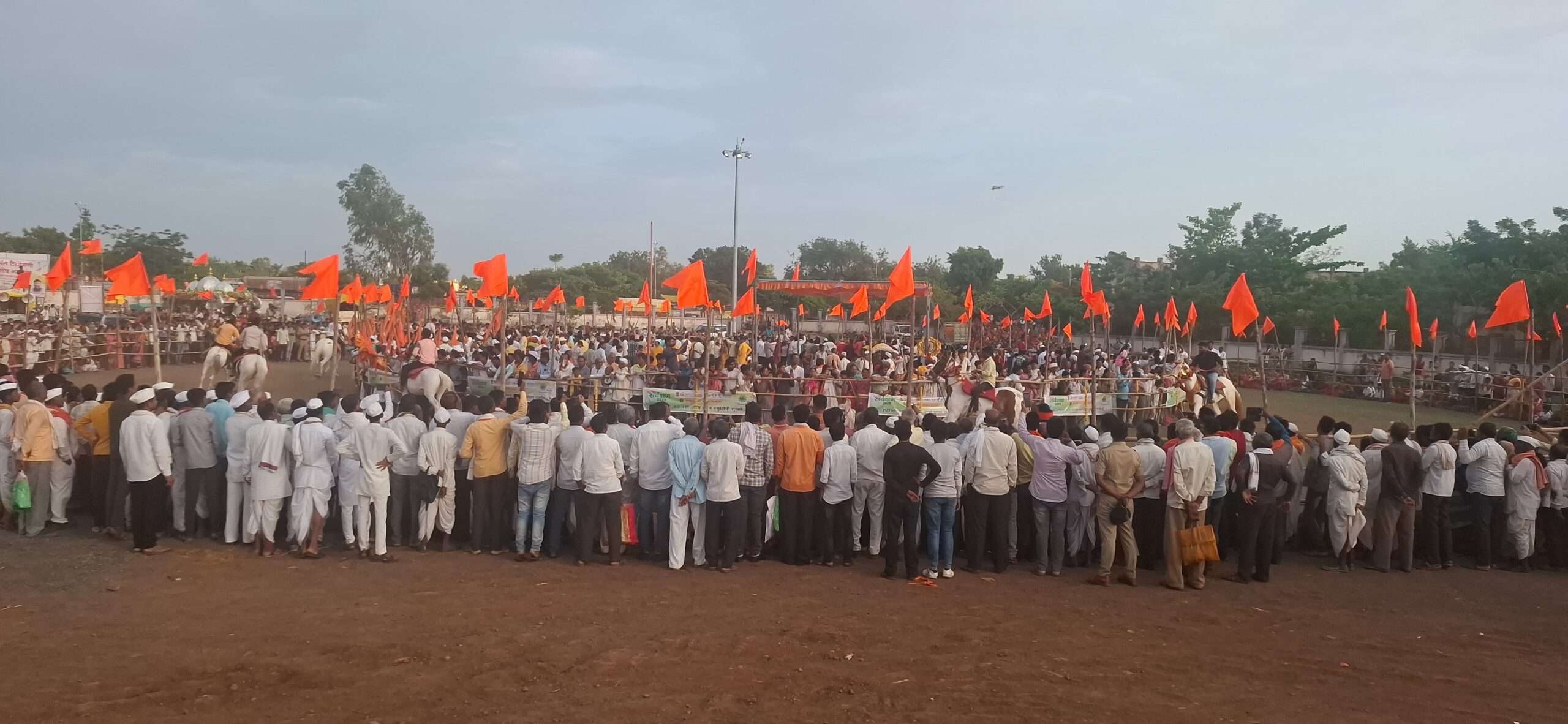 12 अश्वांच्या माध्यमातून पार पडलेल्या रिंगण सोहळ्याला हजारो नागरिकांनी गर्दी केली होती . हिंगोली जिल्ह्यातील नरसी येथील संत नामदेव महाराजांचा पालखी पंढरपूरकडे रवाना झाली.