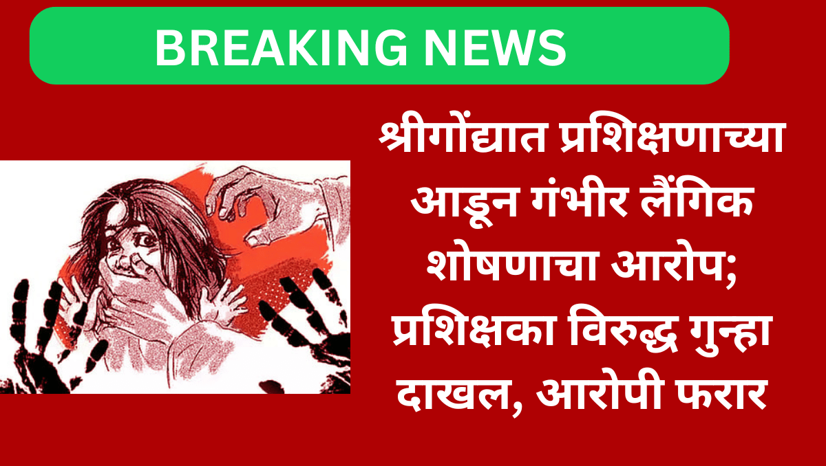 पोलीस भरतीची तयारी करणाऱ्या एका तरुणीवर तिच्याच प्रशिक्षण अकॅडमीतील प्रशिक्षकाने लैंगिक अत्याचार केल्याचा आणि धमकावून शारीरिक शोषण केल्याचा गंभीर प्रकार श्रीगोंदा शहरात उघडकीस आला आहे. संबंधित तरुणी गर्भवती राहिल्यानंतर तिच्यावर दबाव टाकून गर्भपात घडवून आणल्याचा आरोपही या प्रकरणात करण्यात आला असून, घटनेने शहरात तीव्र संतापाची भावना निर्माण झाली आहे.